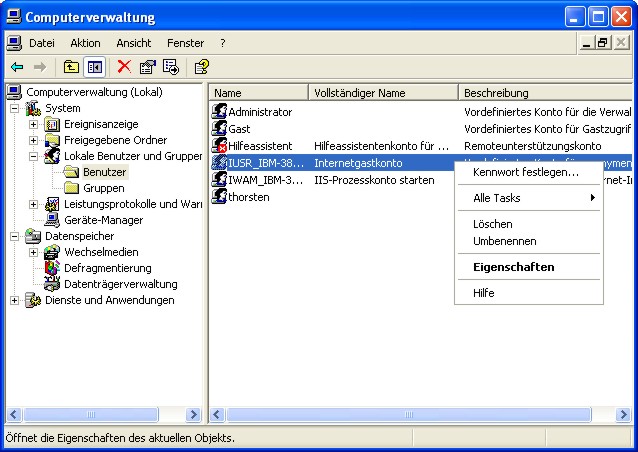4. Klicken Sie mit der rechten Maustaste auf das Benutzerkonto IUSR, klicken Sie dann auf Eigenschaften.